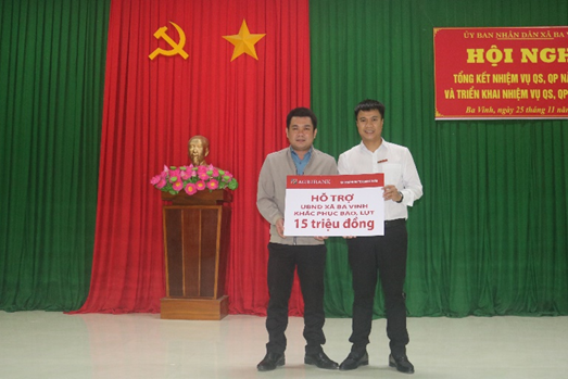 NGÂN HÀNG CHI NHÁNH AGRIBANK BA TƠ-QUẢNG NGÃI HỖ TRỢ UBND XÃ BA VINH KHẮC PHỤC BÃO LỤT 15 TRIỆU ĐỒNG